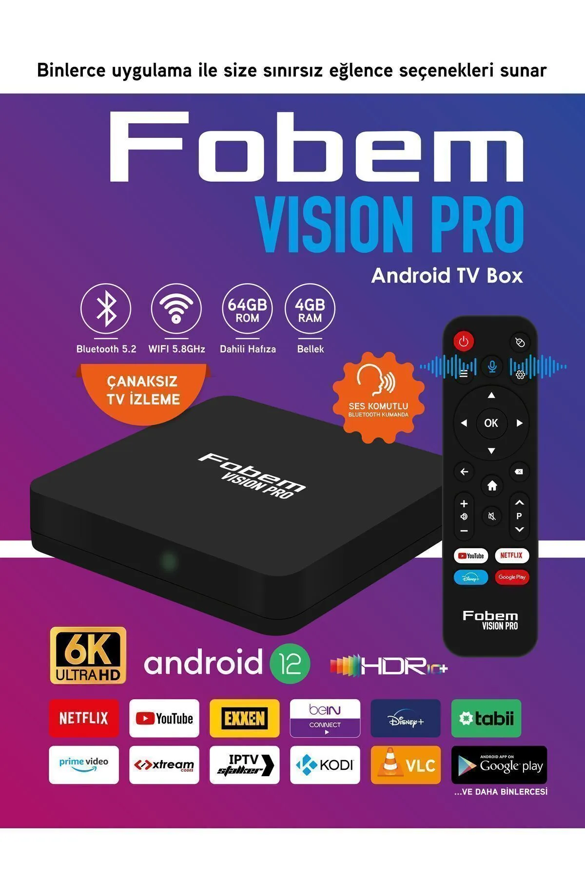 FOBEM Vision PRO 6K Android TV Box Medya Oynatıcı - Sesli Komut Bluetooth Wi-Fi 4 GB Ram 64 GB Hafıza