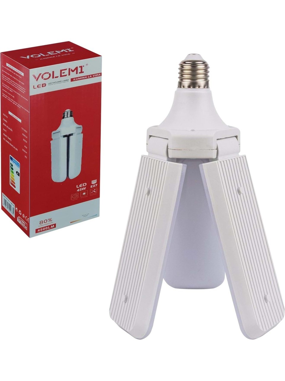 Volemi Pervane LED Ampül 3 Kanatlı 220V 45W 4500 Lümen 6500K Beyaz E27